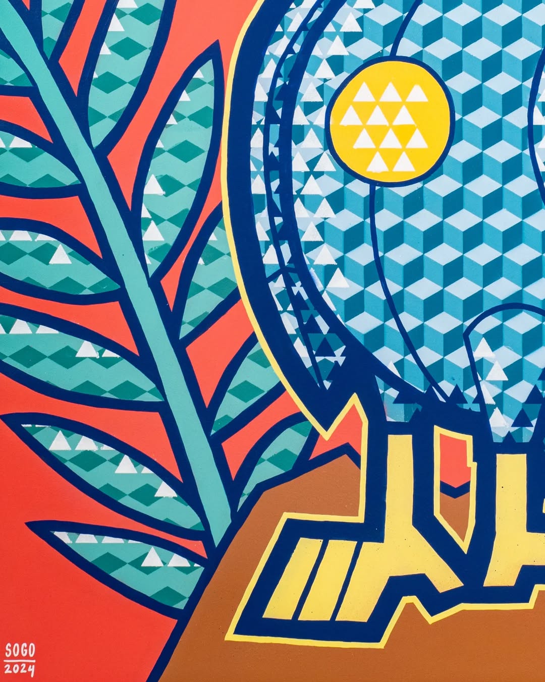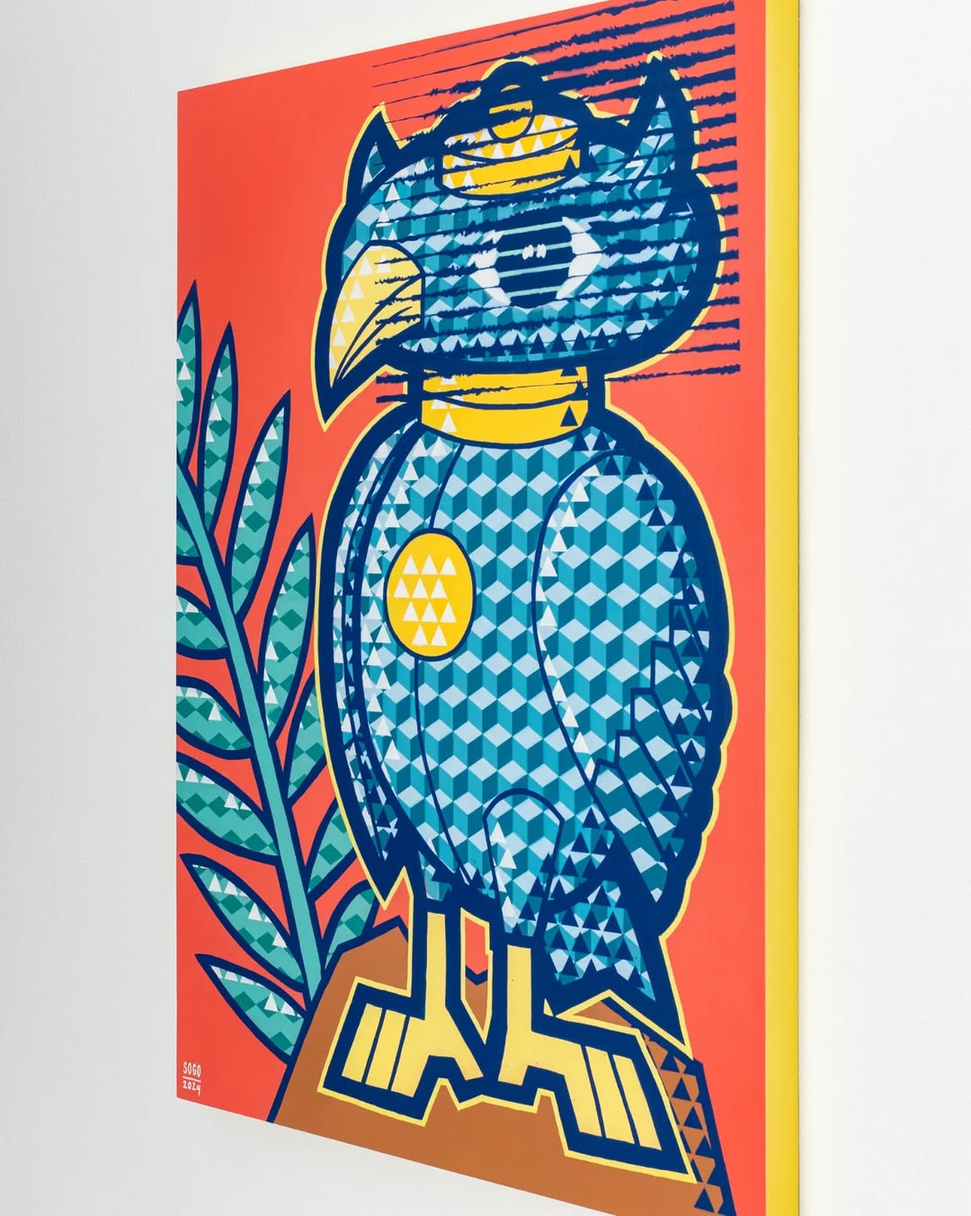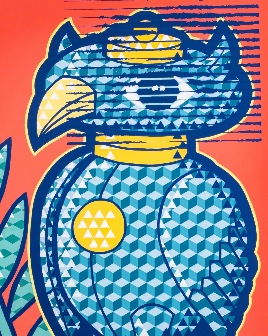Elevate your space with this striking hawk illustration, designed with vivid geometric patterns and vibrant colors. A perfect statement piece for modern interiors, adding energy and creativity to any room.